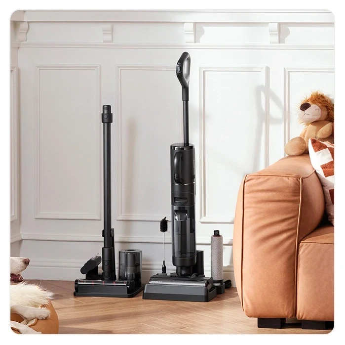 | Комплектация | док-станция для хранения и зарядки пылесоса, документация, моющее средство, сменный ролик, щетка для очистки аксессуаров, насадки |