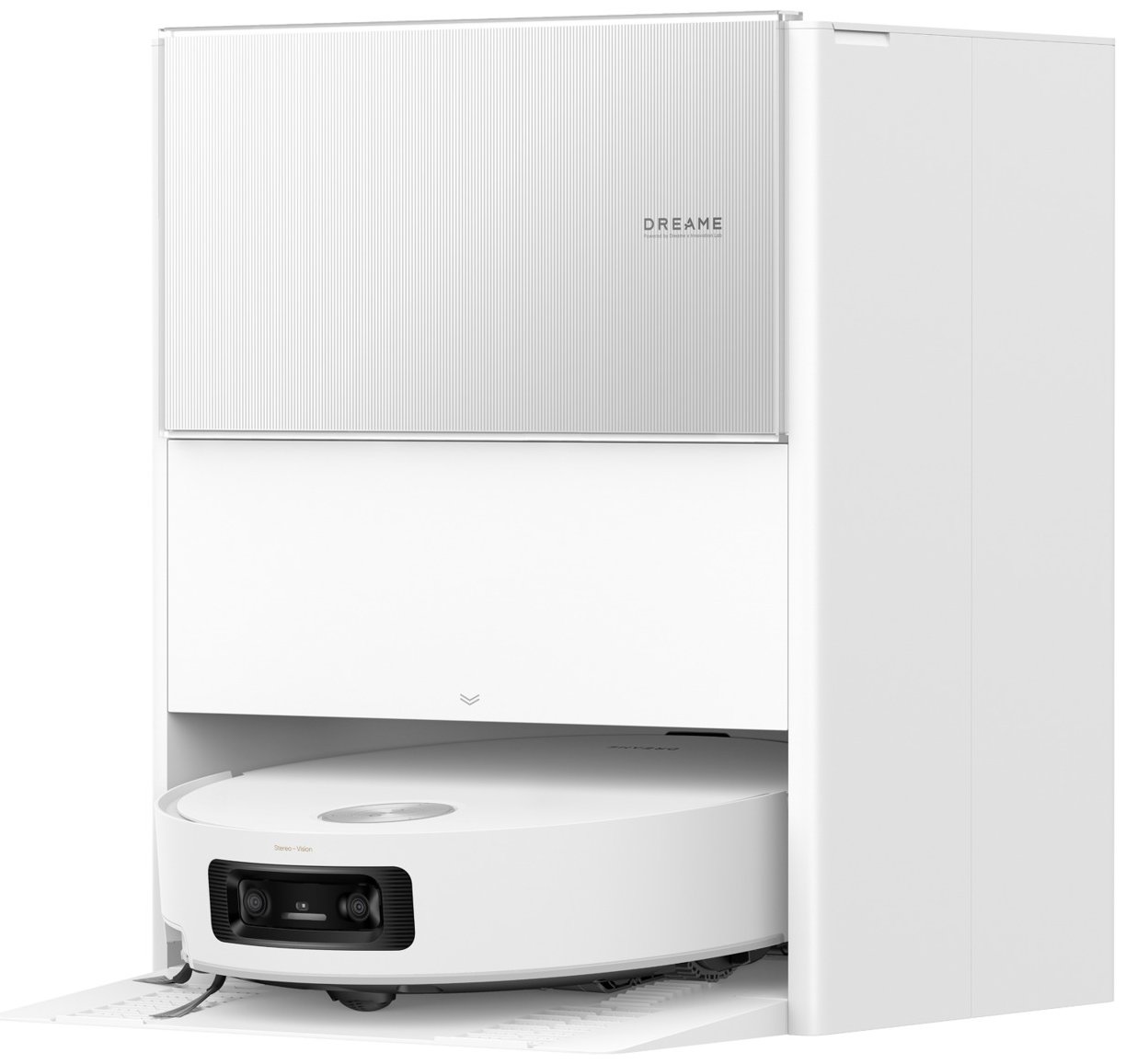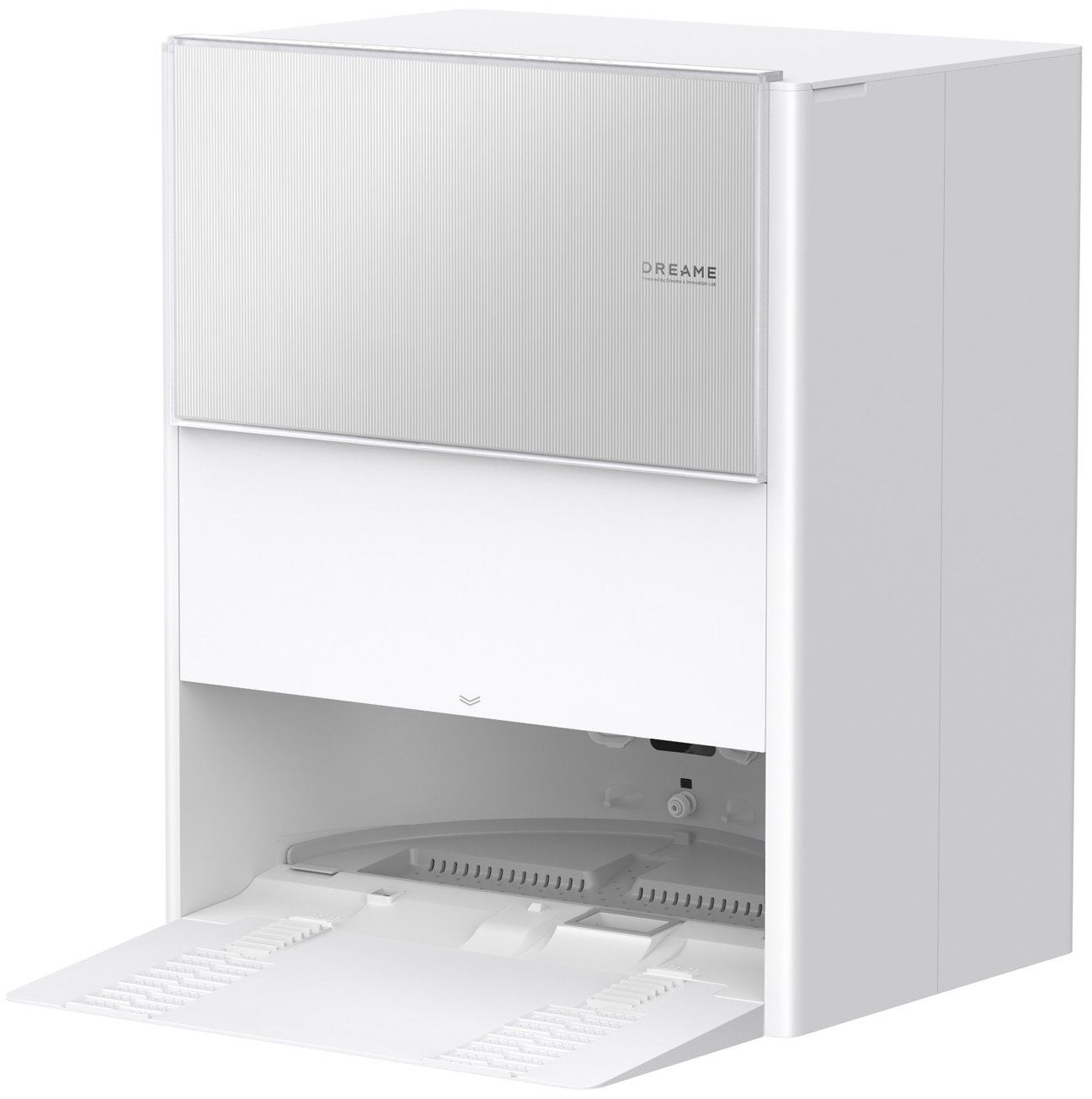 Станция полностью берёт на себя обслуживание робота. Она опустошает встроенный пылесборник объемом 0.22 л в большой контейнер станции на 2.5 л, подаёт чистую воду из резервуара на 4 л и возвращает робота к уборке после зарядки. Такой подход значительно снижает необходимость ручного ухода и делает модель почти автономной.